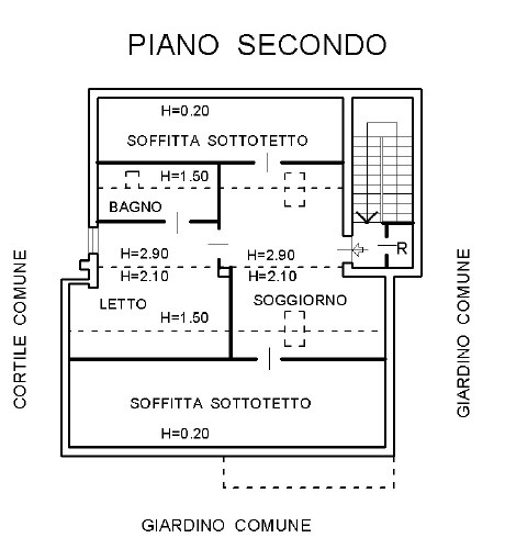 - Piano Secondo mansardato: di 100 mq, con ampia zona giorno, camera, bagno e ripostigli